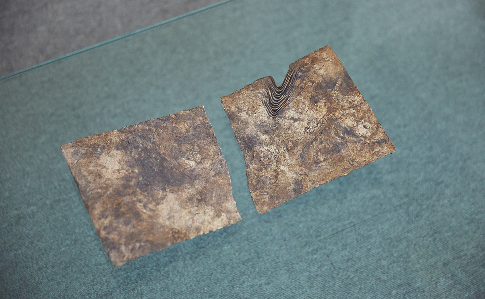 リビングテーブルに置いているのは、盛岡の作家・泉田之也さんの茶器。2年ほど前に酔って真っ二つに割ってしまいまして…。金継ぎもできない素材だったので、この状態を楽しむことにしました。
