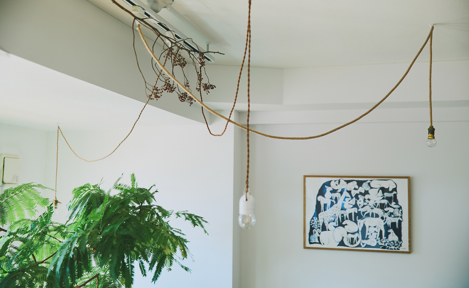 強い主張のあるものより、いくつか組み合わせて空間を形づくれるものを選んでいます。デンマークの蚤の市で見つけた作品や、〈The Poster Club〉、〈Fine Little Day〉のポスター、日本で購入したものなど、来歴は様々です。